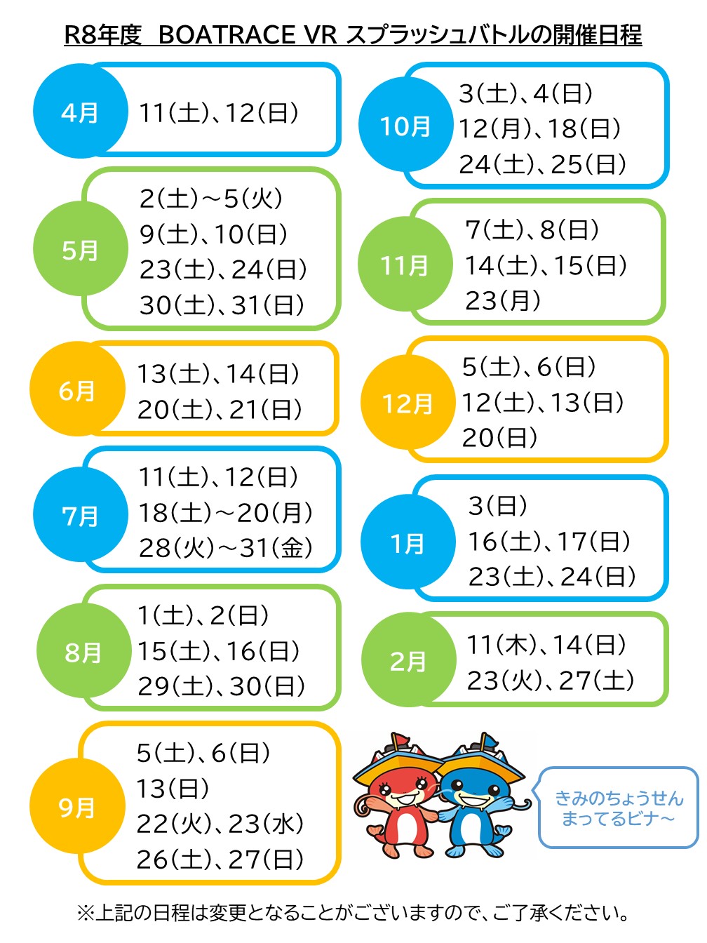 こちらの予定は変更する場合がありますのでご了承ください。変更となった場合は改めてお知らせします。