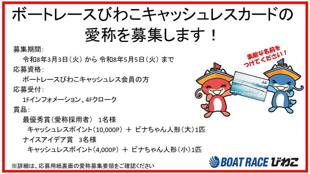 あなたのアイデアで、びわこのキャッシュレスカードに素敵な名前をつけてください。